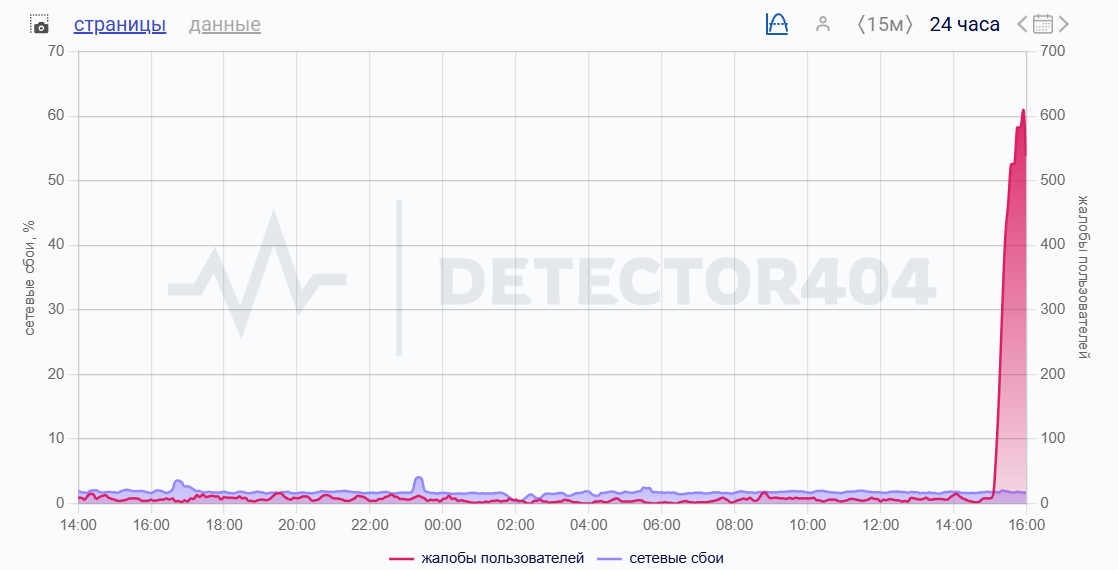 По данным сервиса, в России за час поступило около 1750 жалоб на работу «Телеграма», а за сутки — 2298 обращений. Пользователи отмечают, что у них не загружается приложение, не открываются сообщения, а также исчезла возможность загружать мессенджер через сайт.