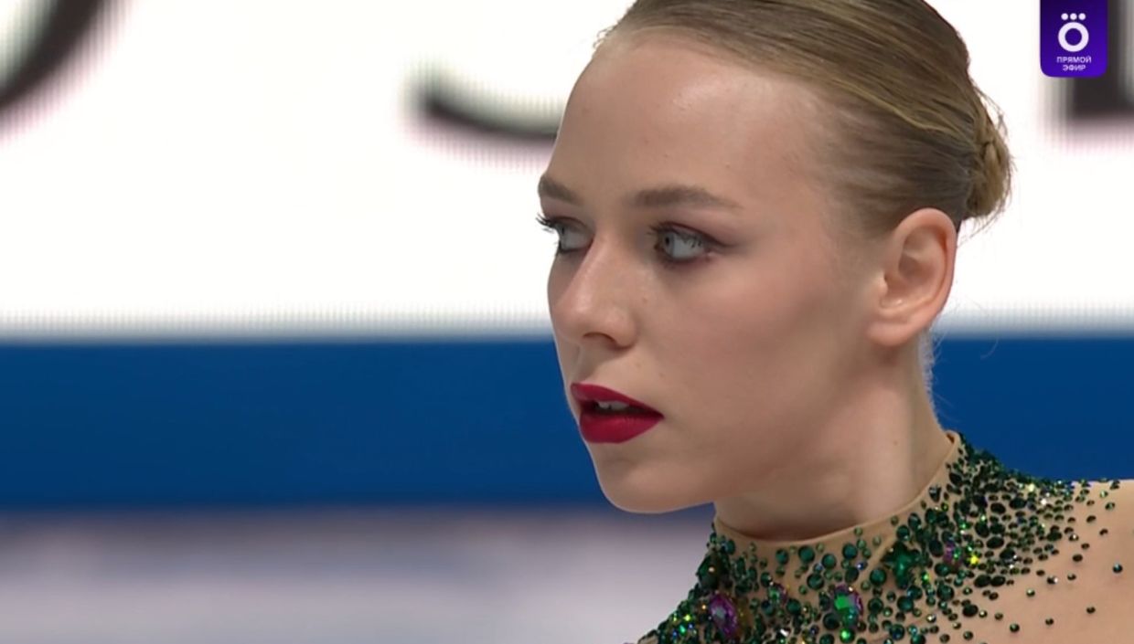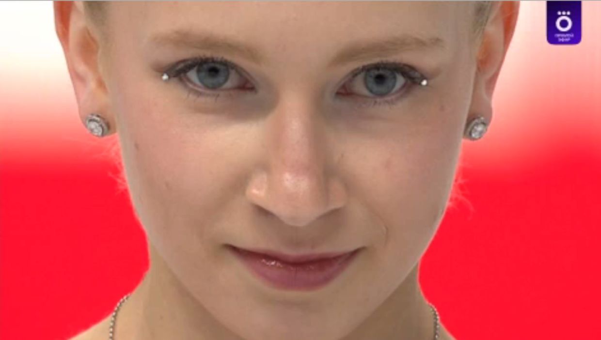Ого! Каскад из двух тройных риттбергеров в первой разминке показывает Анастасия Грачёва из команды Молдавии. Несколько сезонов назад она сменила спортивное гражданство.