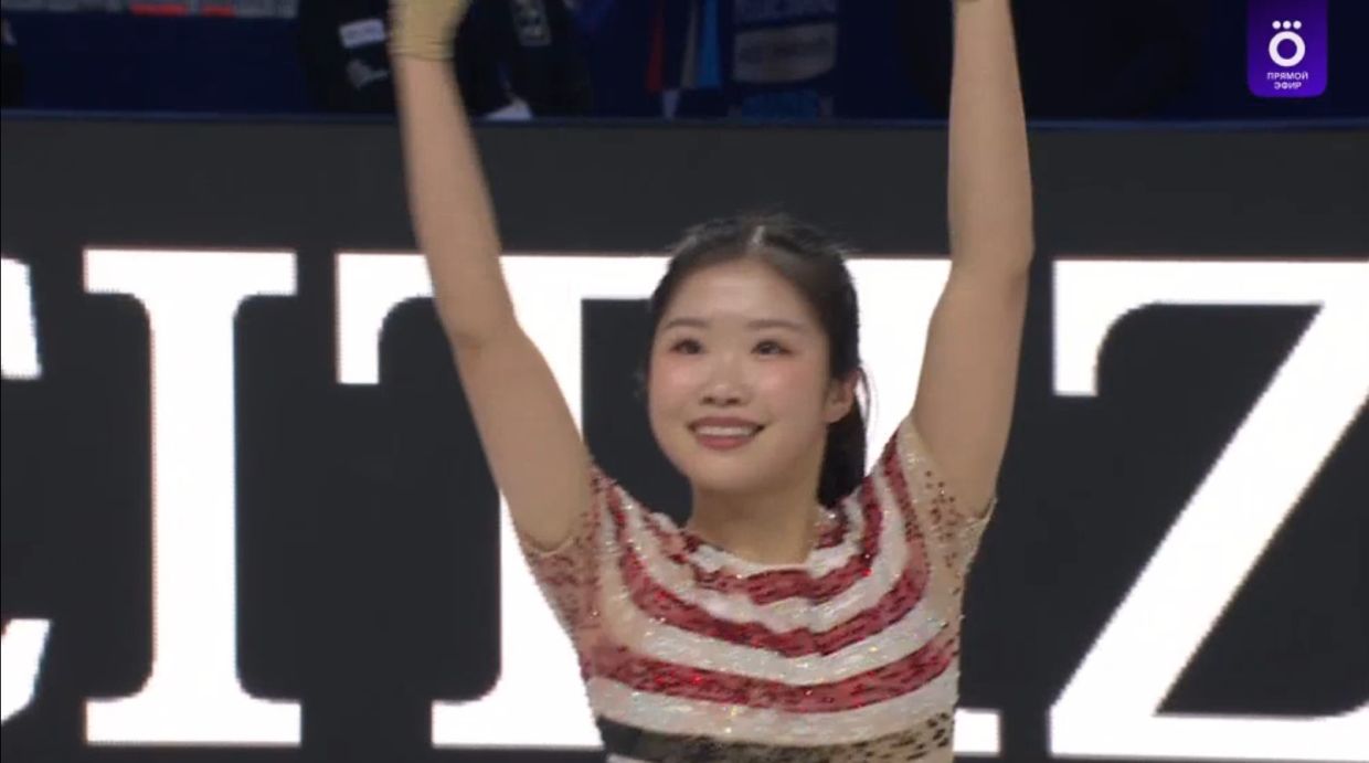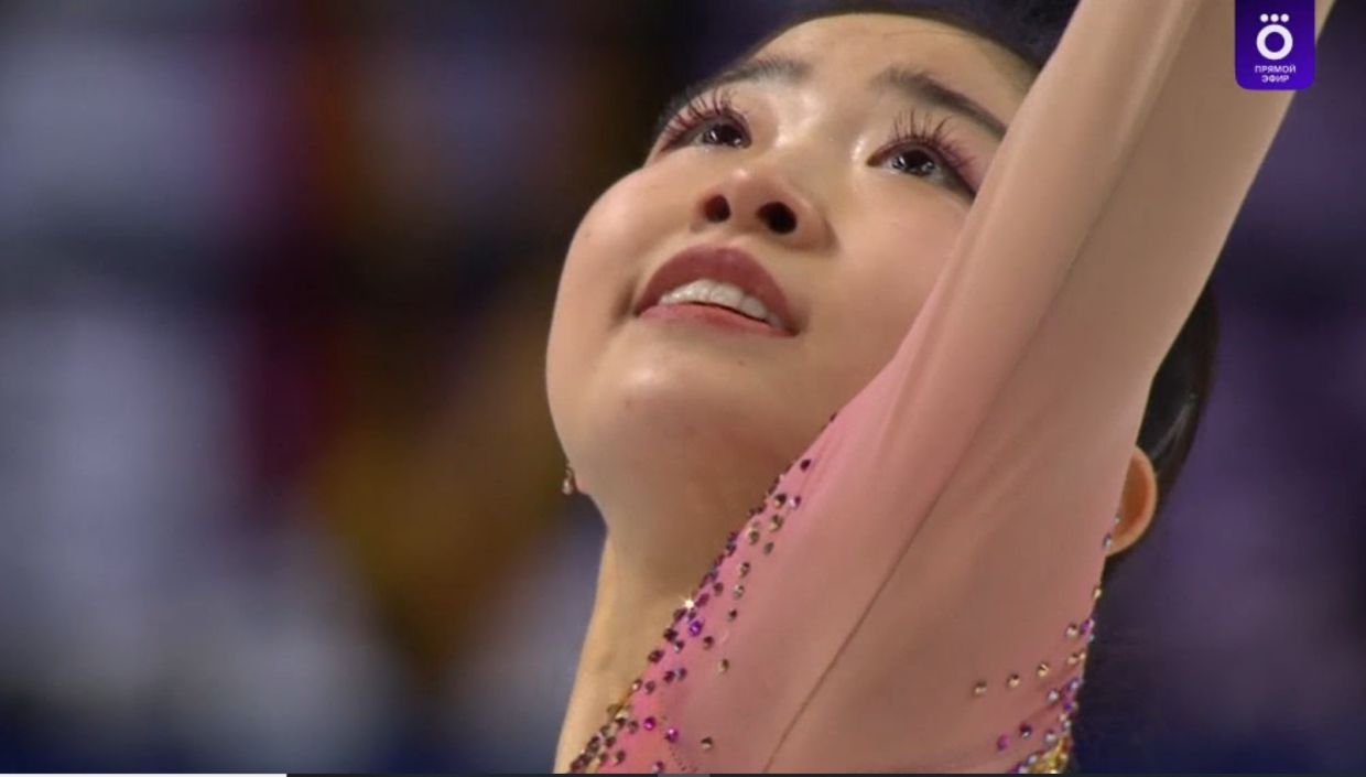 Не пошёл прокат у юной корейской фигуристки Джиа Шин: тройной лутц в степ-аут первым же элементом, каскад лишь из тройного флипа и двойного тулупа во второй половине, потеря уровня в дорожке шагов… Обидно, не реализовала свой потенциал спортсменка, могла кататься намного лучше.
