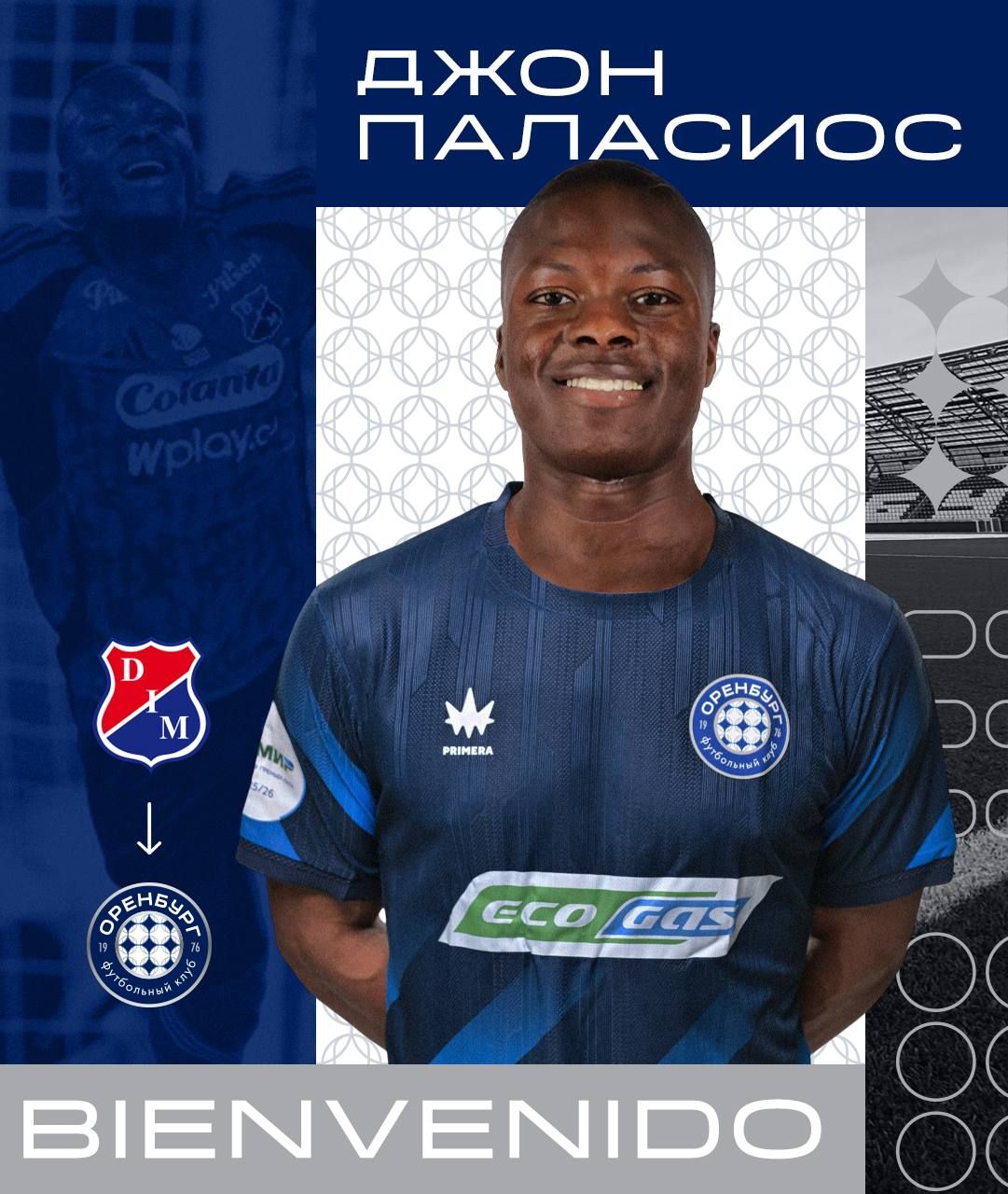 «Джон Паласиос в ФК «Оренбург». Наш клуб пополнил 26-летний центральный защитник из Колумбии. Всю карьеру Джон выступал на родине за местные клубы: «Леонес Итагуи», «Америка де Кали», «Депортиво Перейра», «Интер де Богота» и «Индепендьенте Медельин». Приветствуем и желаем удачи первому колумбийцу в истории «Оренбурга»!» — сказано в сообщении пресс-службы «Оренбурга».