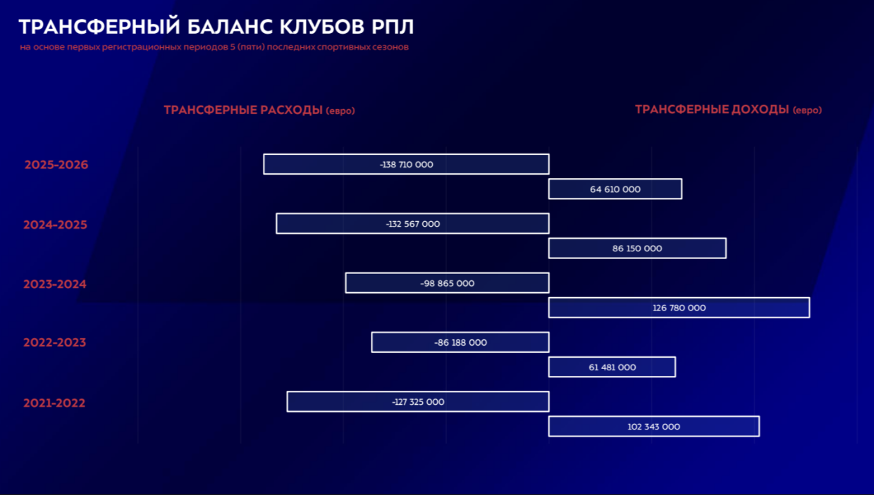 В общей сложности команды заплатили за футболистов € 138 710 000, а трансферные доходы, в свою очередь, составили € 64 610 000.
