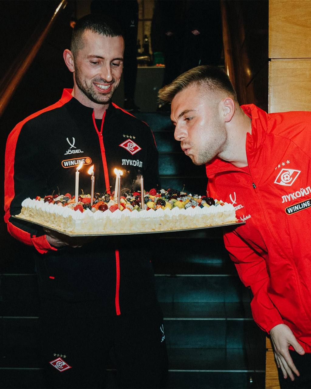 Футболисту был преподнесён праздничный торт. 16 января защитнику красно-белых исполнилось 28 лет.