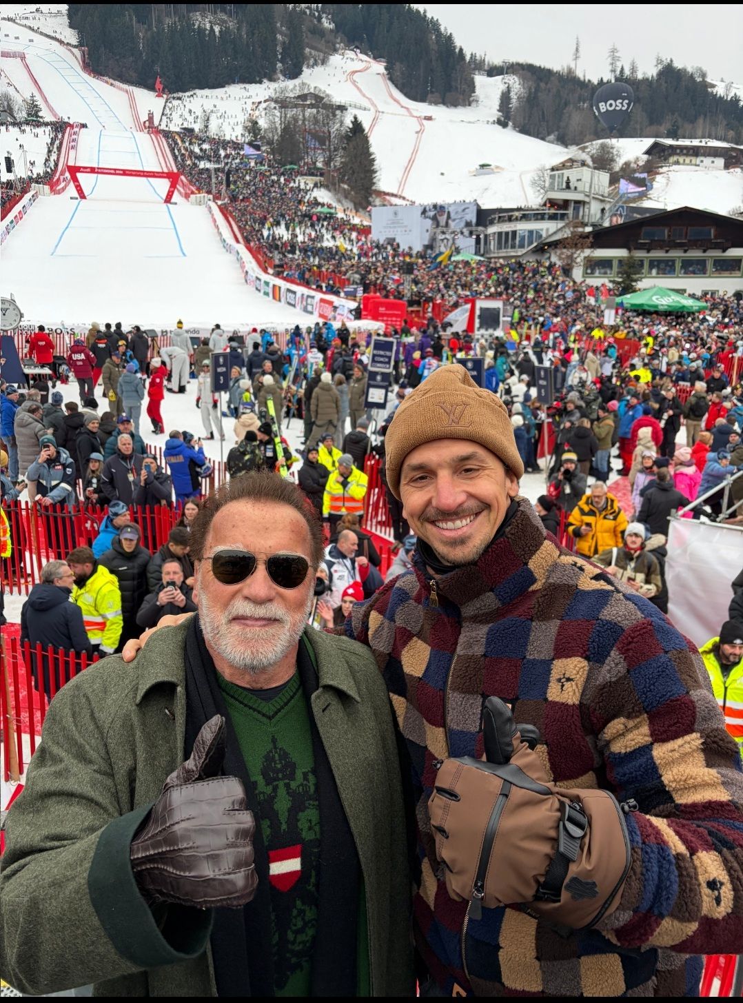 Бывший нападающий сборной Швеции Златан Ибрагимович опубликовал фото с американским актёром и 38-м губернатором штата Калифорния Арнольдом Шварценеггером на австрийском горнолыжном курорте Кицбюэле.
