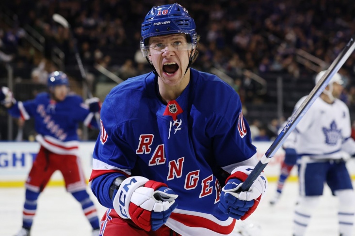 В текущем сезоне российский форвард в 31 матче за клуб из Нью-Йорка набрал 22 (10+22) очка. В общей сложности у Артемия Панарина сейчас 311 заброшенных шайб и 590 результативных передач.