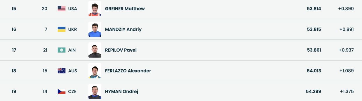 Павел Репилов по итогам второй попытки улучшил свои позиции. Но есть нюанс — поднялся он всего на одну строчку и стал 16-м. Заключительные попытки (третья и четвёртая) будут уже завтра, 8 февраля, но понятно, что сколько-нибудь реалистичных шансов отыграть отставание от третьего места в более чем полторы секунды нет.