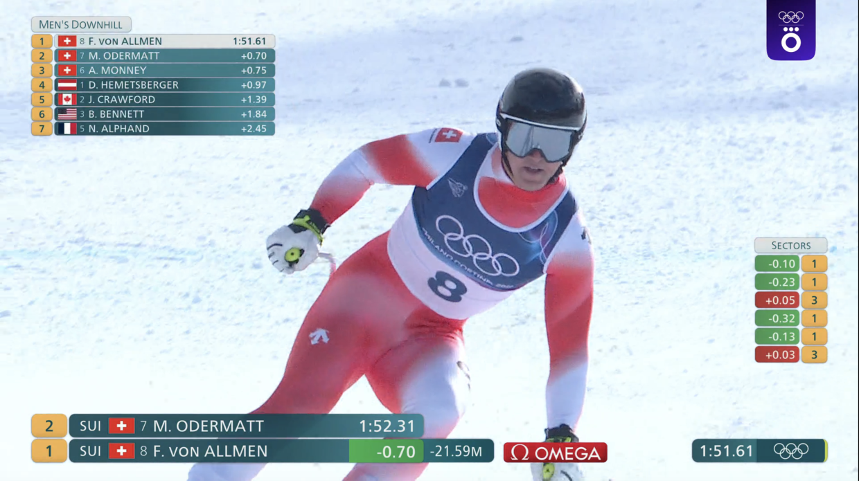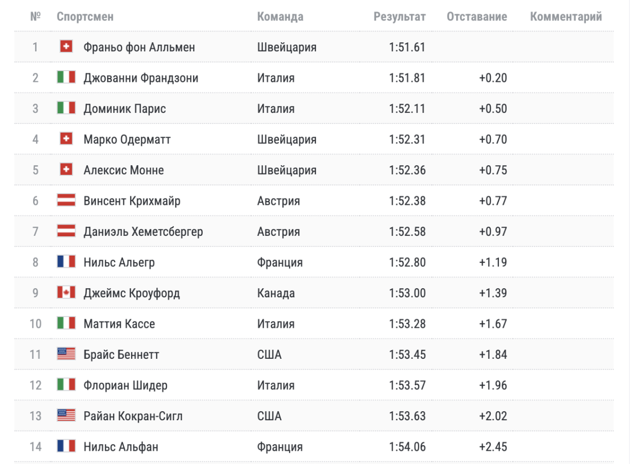 Франьо фон Алльмен! На 0.70 обошёл Одерматта и стал первым.