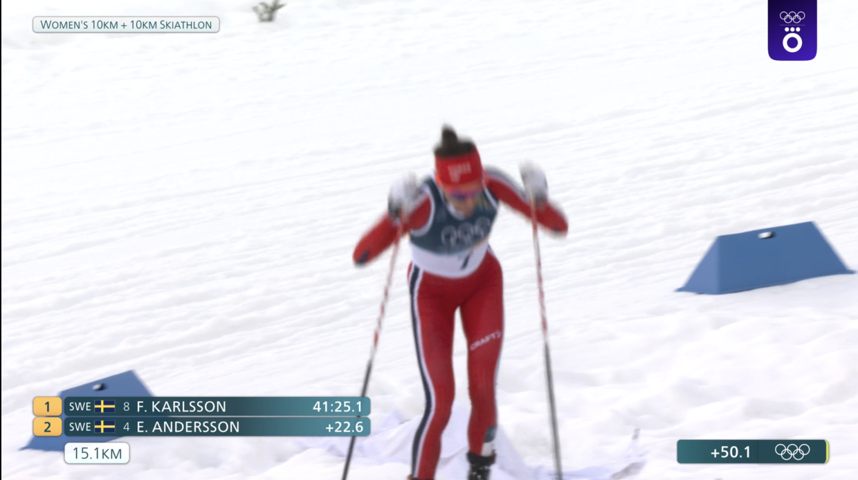 Уже совсем скоро переход на конёк. Тройка лидеров держится рядом, а Сундлинг отстала от неё!