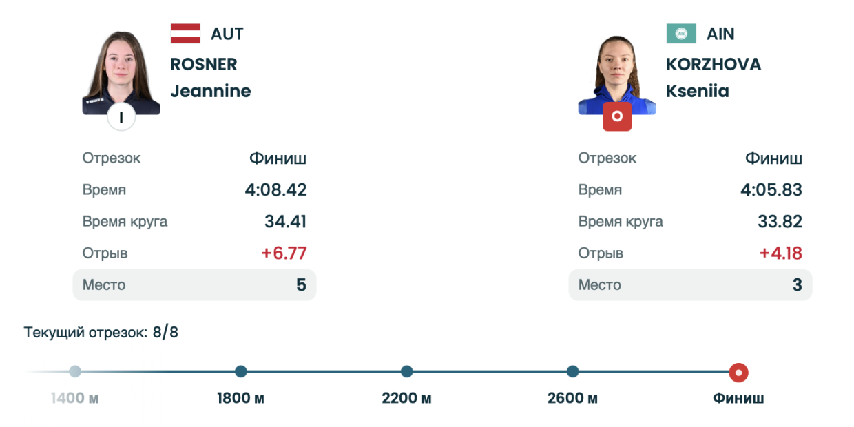 Ситуация на отметке 1400 м. Потихоньку разгоняется российская спортсменка.