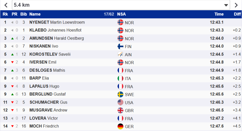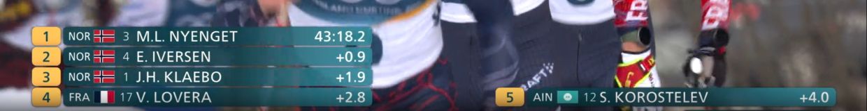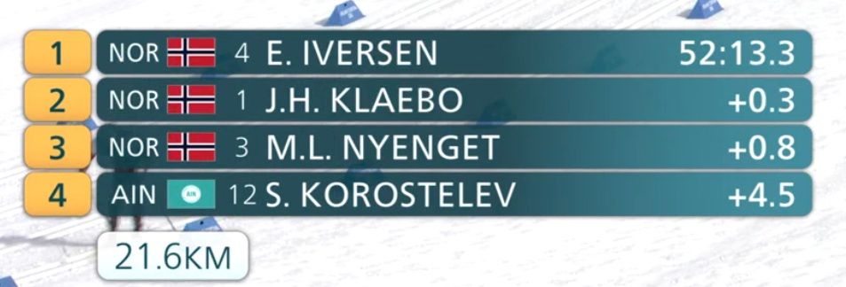 Немного увеличился разрыв между тройкой норвежцев и Коростелёвым.