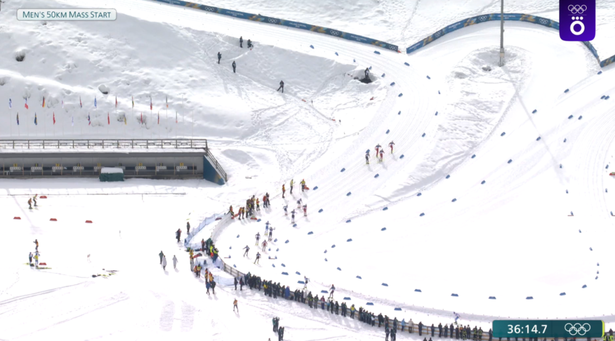 Самым ярким событием предпоследнего дня Игр уже стал лыжный марафон на 50 км, в котором норвежец Йоханнес Клебо установил «вечный» рекорд, выиграв шестое золото Олимпиады из шести возможных. Помешать ему пытался россиянин Савелий Коростелёв. Россиянин боролся изо всех сил, но занял пятое место, тогда как весь пьедестал оказался норвежским.