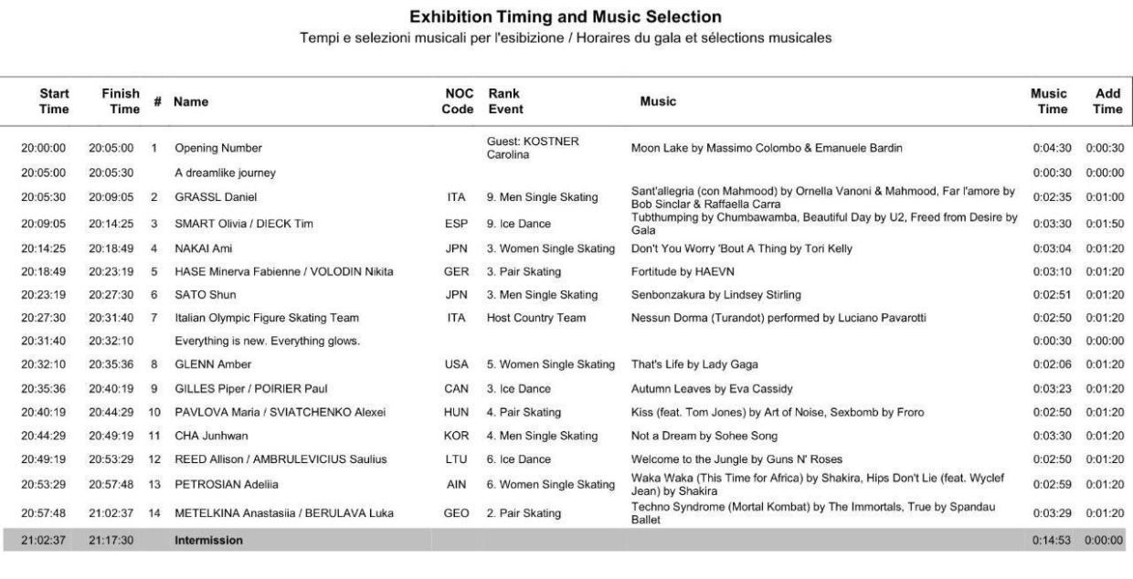 А вот и полный список участников показательных выступлений. Среди тех, чьи номера мы увидим этим вечером значатся имена Михаила Шайдорова, Каори Сакамото, Каролин Костнер, Мэдисон Чок/Эван Бейтс, Алисы Лью и многих-многих других.