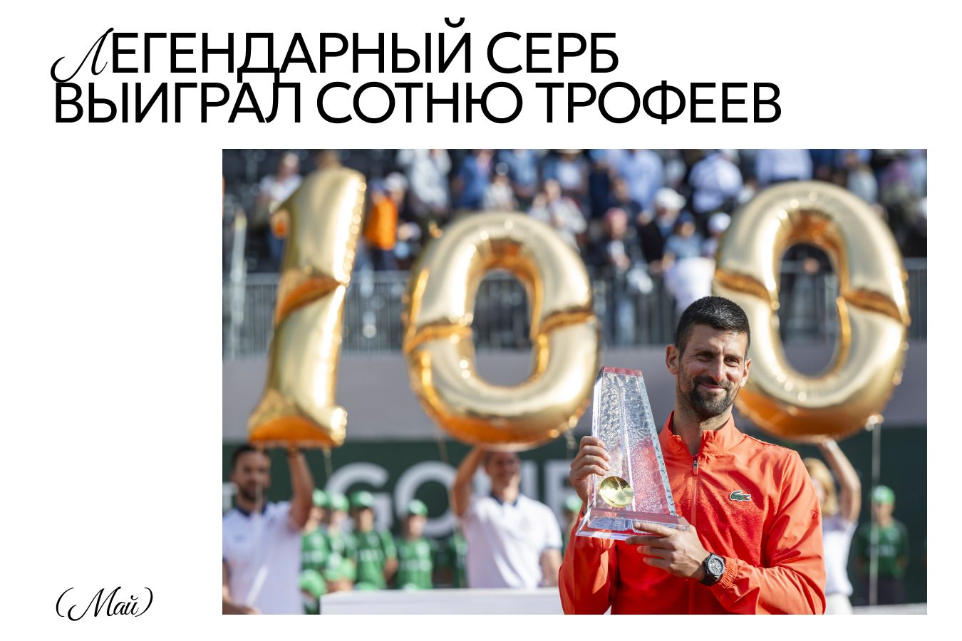 24-кратный чемпион ТБШ выиграл в теннисе всё что только можно, однако продолжает оставаться в деле, несмотря на то что ему уже 38. Забавно, но свой 100-й титул на высшем уровне Джокович завоевал на грунте, покрытии, которое исторически не является его любимым. В финале Женевы Новак победил Хуберта Хуркача. Ну а в ноябре ему покорился турнир в Афинах, и этот титул стал уже 101-м. В финале Джокович одолел Лоренцо Музетти.